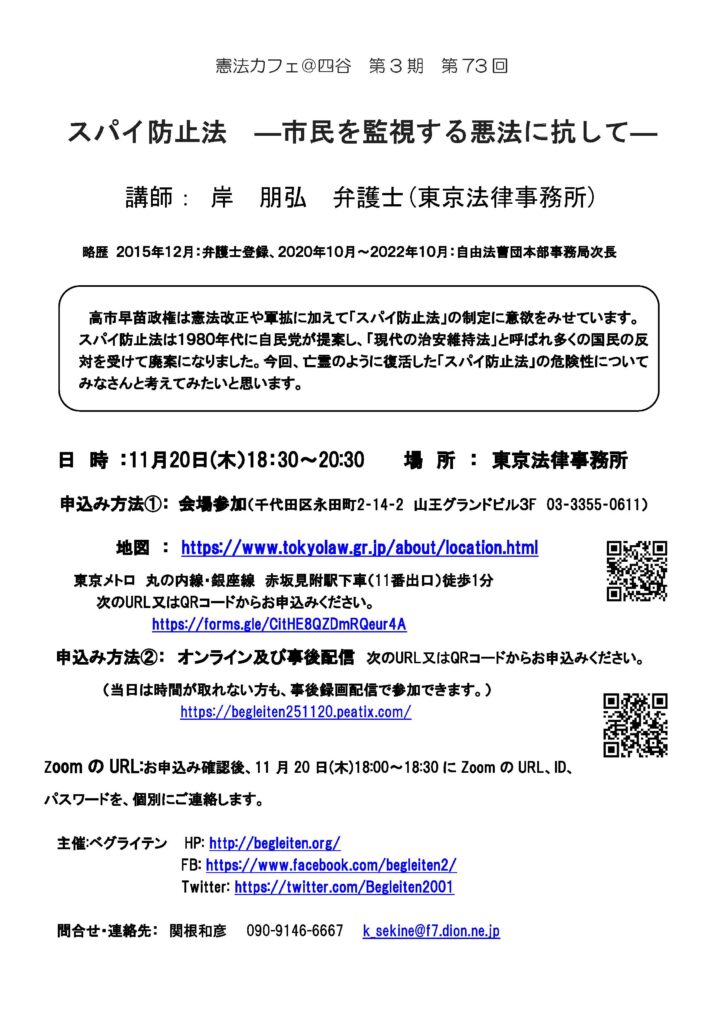 ベグライテン 憲法カフェ@四谷 (第3期 第73回)