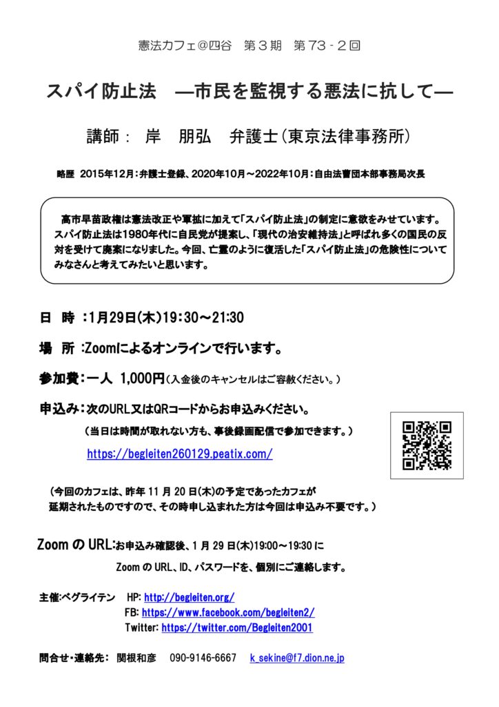 ベグライテン 憲法カフェ@四谷 (第3期 第73回)