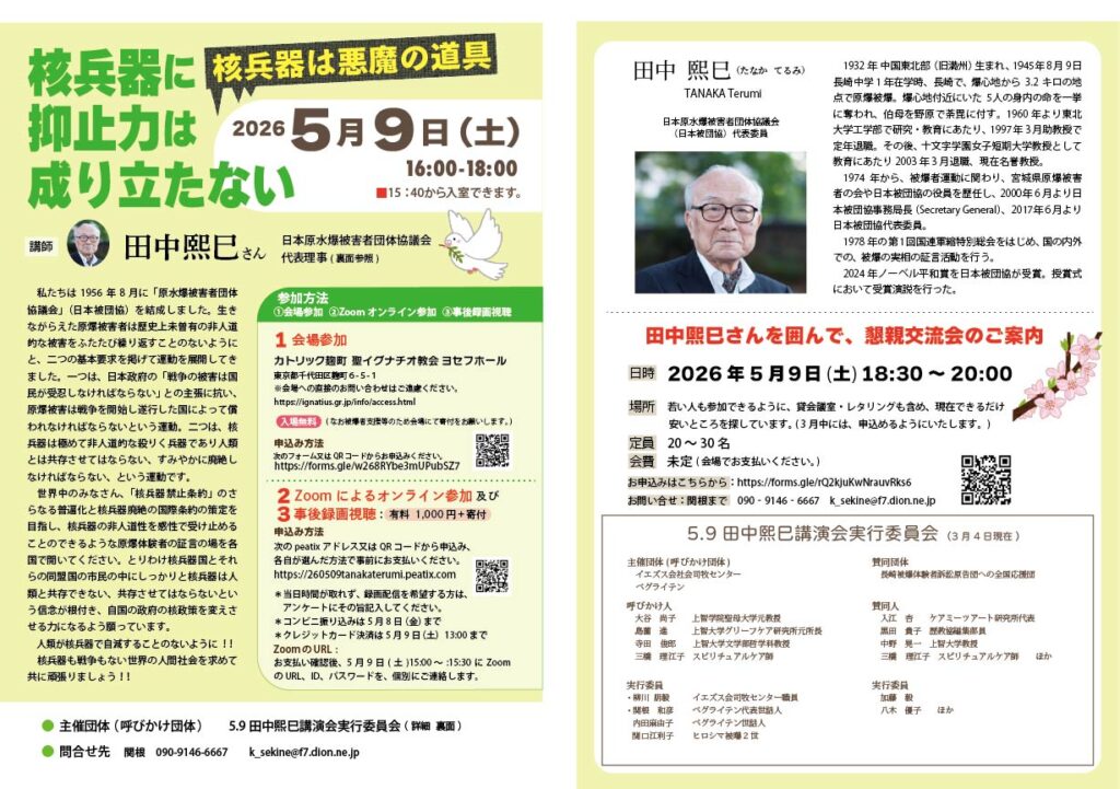 主催団体(呼びかけ団体) 5.9田中熙巳講演会実行委員会(詳細末尾)